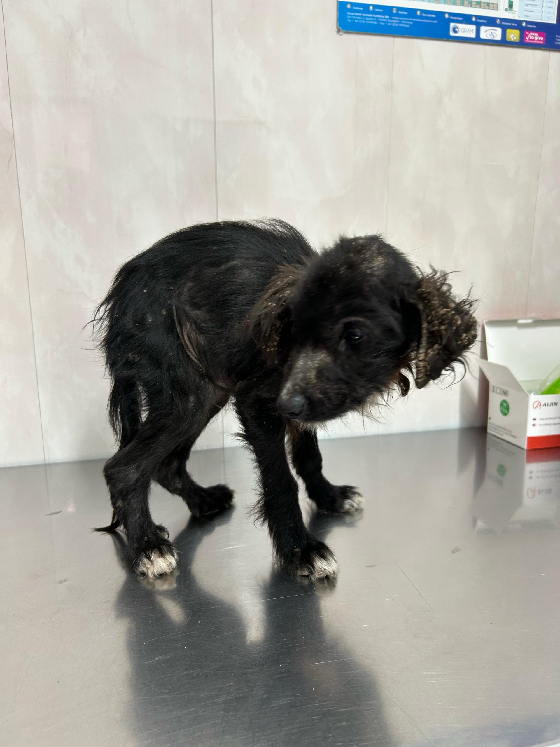 en Tierärztin im Shelter kastrierten wir die Hunde, die wir für eine Ausreise nach Deutschland reserviert hatten. Währenddessen entdeckten wir zwei weitere schwer kranke Welpen, die wir sofort in die Klinik gebracht haben. Einer davon war Rudi, ein völlig abgemagerter Welpe mit einem schlimmen Milbenbefall. Die andere Hündin, deren Geschwister bereits verstorben waren, nannten wir Fiona. Leider wurde sie in der Klinik positiv auf Parvo und Canines Coronavirus getestet. Trotz aller Bemühungen der engagierten Tierärzte in der Klinik hat sie den Kampf letztendlich nicht überstanden (Update: Rudi (Foto unten) hat überlebt und konnte erfolgreich vermittelt werden).