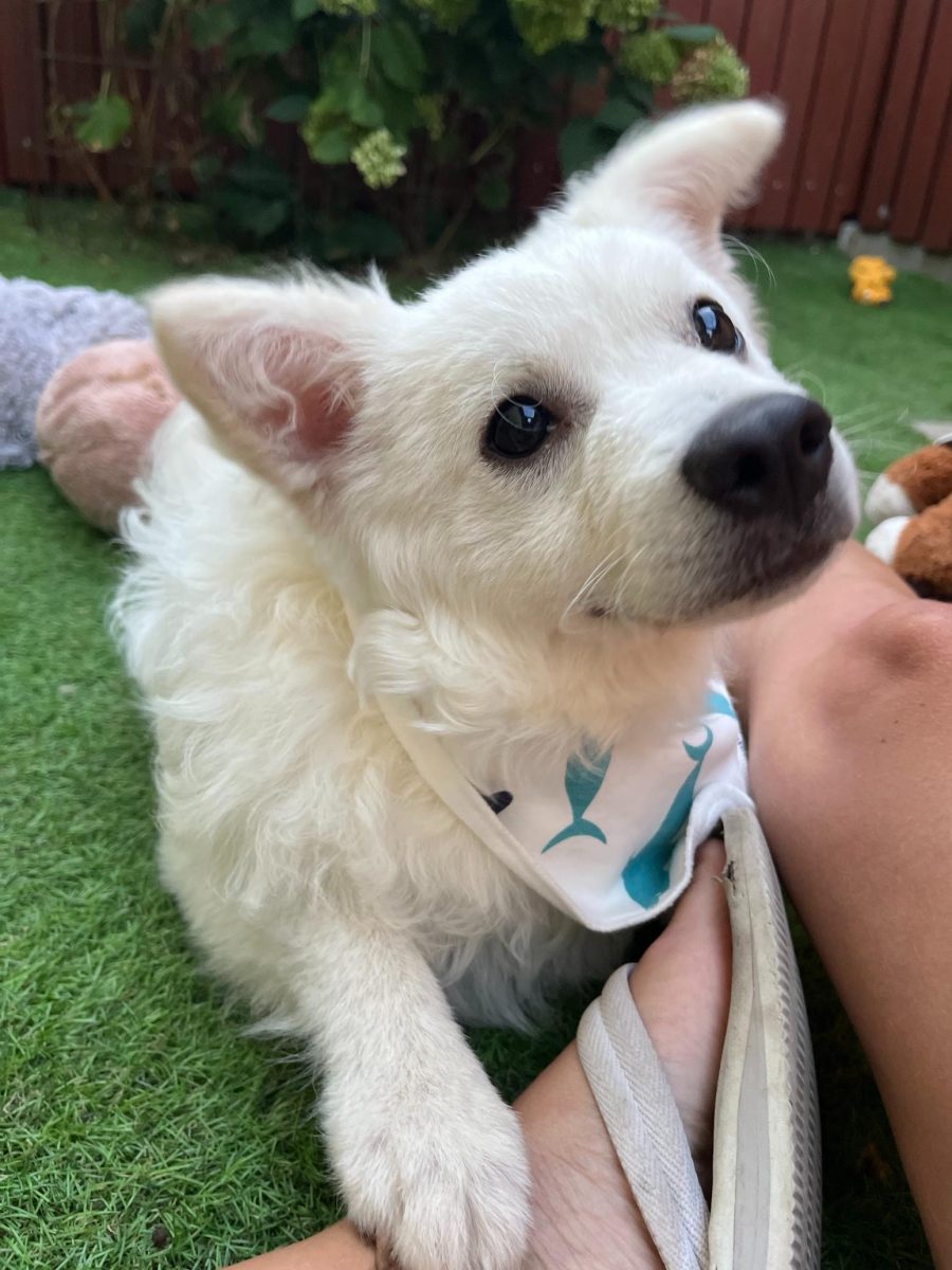 Odi wurde uns von seinem Besitzer übergeben. Dieser wollte den jungen Rüden nicht länger und gab ihn deshalb ab. Der Junghund wirkt allgemein etwas unsicher, woraus wir ableiten, dass er bisher recht isoliert gelebt haben muss und noch nicht viele (Umwelt-) Erfahrungen sammeln konnte. Odi lässt sich zwar problemlos anfassen und auch hochheben, kann dabei aber noch nicht 100%ig entspannen. Mit Spielzeug kann er auch nicht wirklich etwas anfangen & beschnüffelt es bisher nur. Einzig andere Hunde scheinen ihn etwas zu entspannen & aus der Reserve zu locken. Er schnüffel interessiert aber vorsichtig an ihnen und zeigt sich allgemein im Umgang mit Artgenossen eher devot. Ein Zuhause mit einem ruhigen aber souveränen Ersthund könnte Odi vermutlich helfen, schneller anzukommen. Auch in einer kleinen Hundegruppe könnten wir ihn uns vorstellen. Kleine Kinder sollten nicht im neuen Zuhause leben – Teenager, die den Umgang mit unsicheren Hunden kennen, sollten aber kein Problem sein. Ein Zuhause im ländlichen Raum oder Stadtrand wäre ideal, denn die turbulente Innenstadt könnte ihn mit den vielen Reizen besonders am Anfang zu sehr überfordern. Ein strukturierter Alltag, selbstbewusste Menschen mit dem richtigen Know-How und gezieltem Training werden ihm im Alltag helfen sich schneller zurecht zu finden. Odi ist ein sensibler, kleiner Mischlingsrüde, der ein verantwortungsvolles Zuhause benötigt, wo er sich zu einem ausgeglichenen Hund entwickeln kann. Odi kann ab September ausreisen.