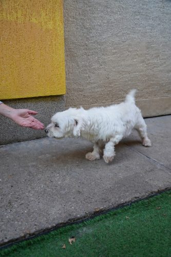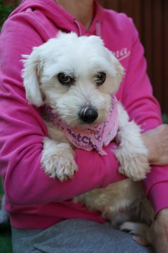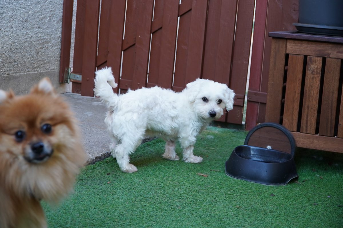 Oscar, Lulu & Bijou kamen aus einer Tötungsstation zu uns. Die Mitarbeiter vor Ort kontaktierten unsere Rettungsstation, obwohl sie wussten, dass keiner der drei ein Spitz ist. Wir konnten die drei nicht dort lassen – nach 45 Tagen dürfen Hunde in Tötungsstationen in Ungarn getötet werden. Also nahmen wir sie bei uns auf, da sie gute Vermittlungschancen haben. Lulu ist von den Dreien die Schüchternste. Sie hat vermutlich noch nicht viele bzw. gute Erfahrungen mit Menschen sammeln dürfen. Sie ist eher Typ Freeze in den meisten Konfrontationen. Sie lässt sich problemlos anfassen und händeln, allerdings kann sie dabei noch nicht entspannen. Wir suchen daher geduldige und erfahrenere Menschen, die ihr schrittweise dazu verhelfen selbstbewusster zu werden. Die kleine Malteser(-mix)hündin mag andere Hunde sehr, weshalb ein Zuhause mit einem souveränen Ersthund definitiv hilfreich für ihre Eingewöhnung wäre. Sie zeigte sich bei unserem Besuch bei der Anwesenheit von Artgenossen deutlich entspannter und zugänglicher. Kleine Kinder sollten nicht im neuen Zuhause leben; Teenager, die eher ruhig sind und eine gewisse Hundeerfahrung mitbringen, wären aber sicherlich kein Problem. Wir sehen sie eher im ländlichen Raum oder am Stadtrand, denn die turbulente Innenstadt würde sie vermutlich überfordern. Wir hoffen, dass Lulu ganz bald ihre Menschen findet und die Chance bekommt, ein erfülltes Hundeleben zu führen. Sie zeigt definitiv Potenzial eine tolle Begleiterin zu werden, wenn man gewillt ist, gezielt mit ihr zu arbeiten. Lulu kann ab November ausreisen.