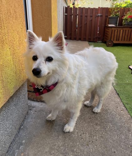 Ariel überlebte ihre Besitzer. Da sich die Hinterbliebenen nicht um sie kümmern wollten, baten sie unsere Spitzrettung um Hilfe. Wir nahmen sie deshalb bei uns auf und suchen für die rüstige Rentnerin nun eine angemessene Altersresidenz. Ariel ist, vermutlich auch aufgrund ihres Alters, eine entspannte Hündin. Sie mag es in der Sonne zu liegen und durch den Garten zu schnüffeln. Mit anderen Hunden kommt sie gut zurecht, weshalb wir sie uns gut als Zweithund vorstellen können. Aber auch als Einzelhund könnte sie glücklich werden, da sie ja auch bisher alleine lebte. Mit Menschen hat Ariel keinerlei Probleme: sie lässt sich problemlos streicheln und genießt die Aufmerksamkeit. Altersgemäß braucht sie nicht mehr viel Action im Alltag. Ariel zeigt sich ihrem Alter entsprechend fit – ein seniorengerechtes Zuhause ohne viele Treppen, die sie steigen müsste, wäre ideal. Ihre neuen Besitzer sollten sich natürlich im Klaren sein, dass bei Senioren schneller kleinere und größere gesundheitliche Wehwechen auftreten können. Aufgrund ihrer entspannten Art wäre sie bestimmt auch eine prima Bürobegleitung. Sie lässt sich prima mit Snacks motivieren, muss im neuen Zuhause aber definitiv ein paar Kilo abnehmen. Kinder sollten mind. im Grundschulalter und eher ruhig sein – ein zu turbulenter Haushalt oder stressiges Wohnumfeld wären nichts für sie. Wir sehen Ariel deshalb auch eher am Stadtrand oder auf dem Land. Die kleine Seniorin hat es verdient noch einmal ein sicheres, liebevolles Zuhause zu bekommen. Ariel kann ab sofort ausreisen.