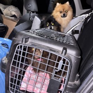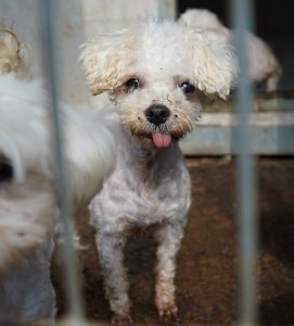 Aus Püspökladány konnten wir 2 Fellnasen reservieren – eine davon, die kleine Chihuahuahündin Meti, durfte auf eine Pflegestelle reisen. Die hübsche Rosza hat direkt ein Zuhause für immer gefunden. Vor Ort konnten wir helfen, indem Tina gemeinsam mit Kristina ein paar sehr verfilzten Hunden eine lange benötigte Sommerfrisur verpassten. Es waren einige Pudelmixe vor Ort, die normalerweise regelmäßig geschoren werden müssen, damit sie keine Hautkrankheiten oder Verfilzungen erleiden. Generell zeigte sich in diesem Shelter wieder, welche Rassen gerade im Trend liegen und von den Vermehrern für unsere westliche Gesellschaft produziert werden. Chihuahuas, Doodles, Frenchies, Möpse – viele davon krank oder in einem schlechtem Allgemeinzustand; manche aussortierte Vermehrerhündinnen, andere “unbrauchbare” Welpen oder überschüssige Rüden, die zur Vermehrung nicht gebraucht werden. Auf dem Rückweg nach Budapest fuhren wir noch zu einer Tötungsstation, die uns 3 Spitze übergeben sollte. Dort angekommen spiegelte sich das wieder, was vielen leider nicht bewusst ist: der schlechte Zustand von Tierheimen in Ungarn. Die Zwinger waren teils beschädigt, klein und ungeschützt. Der Boden bestand teils aus zerbrochenen Paletten, die ein hohes Verletzungsrisiko darstellten. Die Hunde waren durchweg recht dünn: viele “Kampfhund”(-Mixe) und andere Mischlinge. Glücklicherweise muss in dieser Tötungsstation nur selten getötet werden, wenn diese übervoll ist. Wir holten also 2 weiße Spitzhündinnen ab und einen kleinen schwarzen Mischling: Einstein!