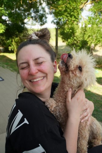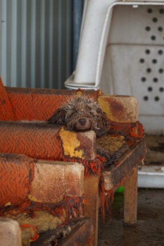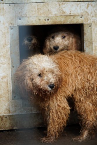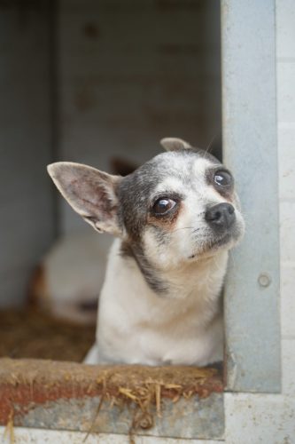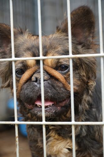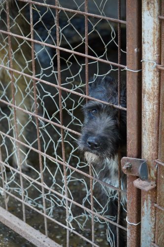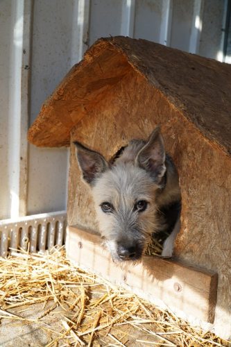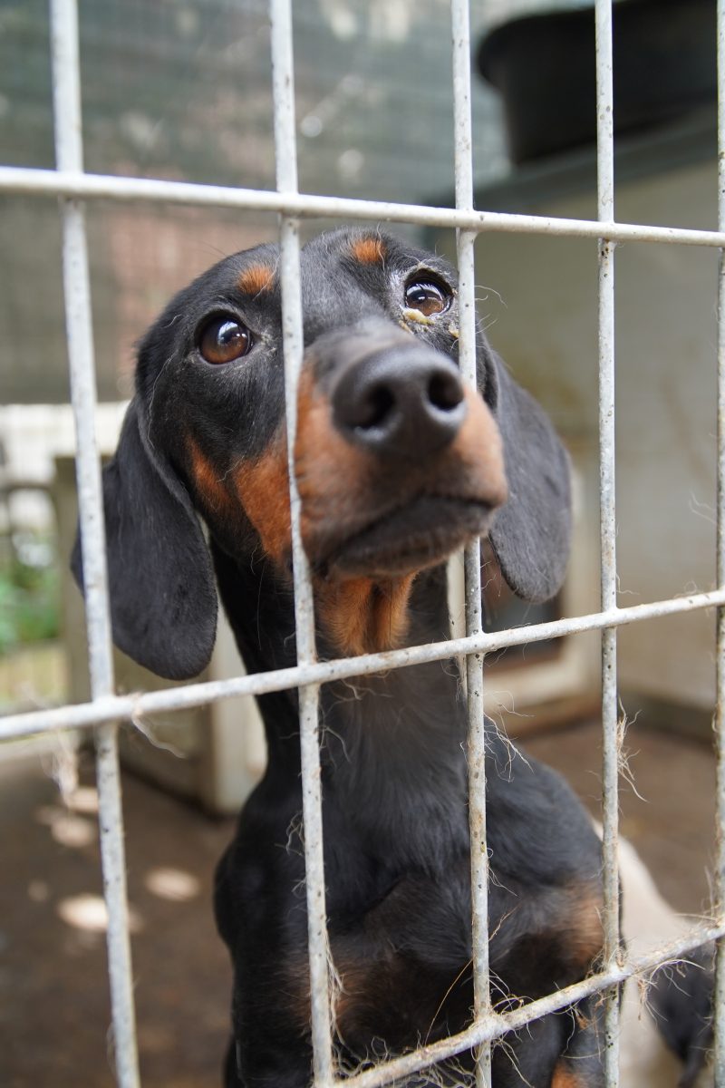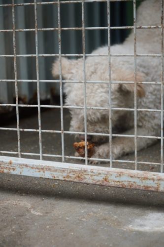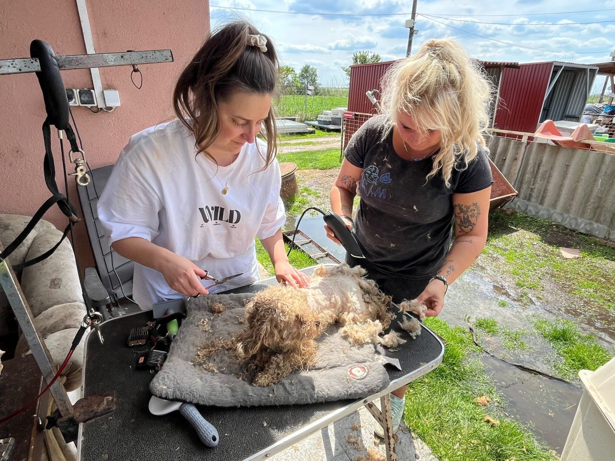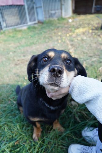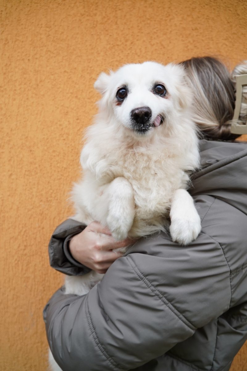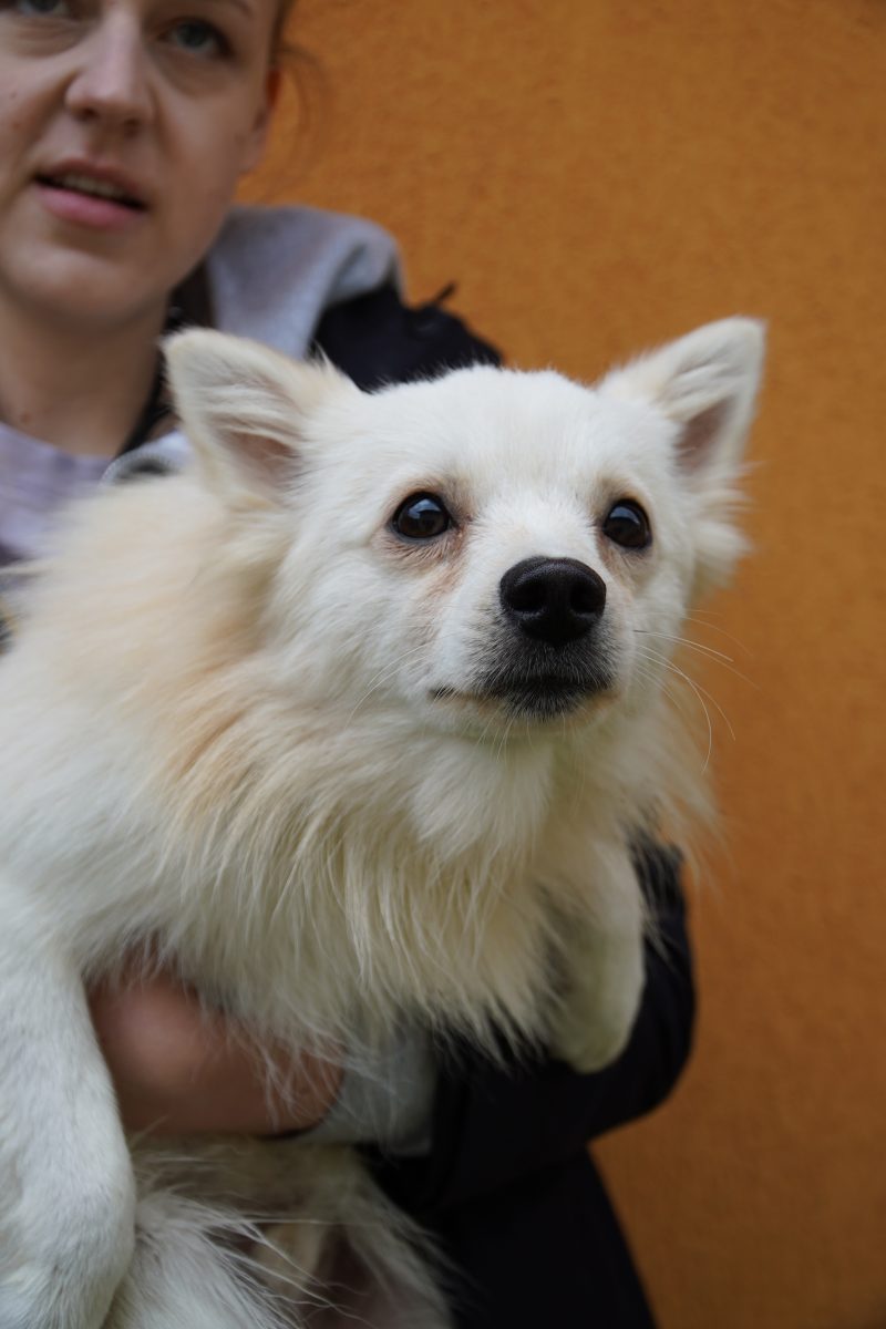 Aus Püspökladány konnten wir 2 Fellnasen reservieren – eine davon, die kleine Chihuahuahündin Meti, durfte auf eine Pflegestelle reisen. Die hübsche Rosza hat direkt ein Zuhause für immer gefunden. Vor Ort konnten wir helfen, indem Tina gemeinsam mit Kristina ein paar sehr verfilzten Hunden eine lange benötigte Sommerfrisur verpassten. Es waren einige Pudelmixe vor Ort, die normalerweise regelmäßig geschoren werden müssen, damit sie keine Hautkrankheiten oder Verfilzungen erleiden. Generell zeigte sich in diesem Shelter wieder, welche Rassen gerade im Trend liegen und von den Vermehrern für unsere westliche Gesellschaft produziert werden. Chihuahuas, Doodles, Frenchies, Möpse – viele davon krank oder in einem schlechtem Allgemeinzustand; manche aussortierte Vermehrerhündinnen, andere “unbrauchbare” Welpen oder überschüssige Rüden, die zur Vermehrung nicht gebraucht werden. Auf dem Rückweg nach Budapest fuhren wir noch zu einer Tötungsstation, die uns 3 Spitze übergeben sollte. Dort angekommen spiegelte sich das wieder, was vielen leider nicht bewusst ist: der schlechte Zustand von Tierheimen in Ungarn. Die Zwinger waren teils beschädigt, klein und ungeschützt. Der Boden bestand teils aus zerbrochenen Paletten, die ein hohes Verletzungsrisiko darstellten. Die Hunde waren durchweg recht dünn: viele “Kampfhund”(-Mixe) und andere Mischlinge. Glücklicherweise muss in dieser Tötungsstation nur selten getötet werden, wenn diese übervoll ist. Wir holten also 2 weiße Spitzhündinnen ab und einen kleinen schwarzen Mischling: Einstein!