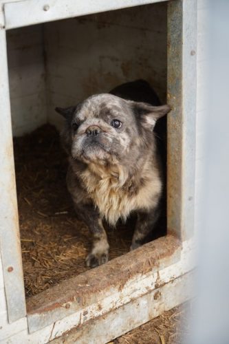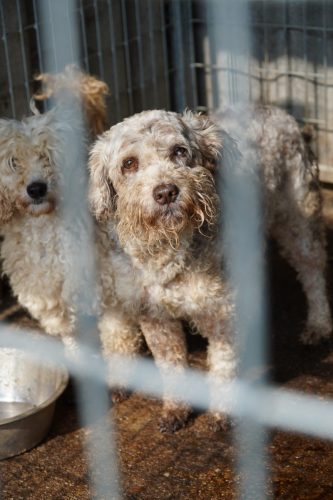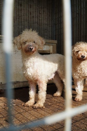 Am Montag (06.10.2025) fuhren wir dann nach Püspökladány. Meist ist dieser Tag der härteste von allen, da die Zustände in diesem Shelter nicht gut sind: Dreck, alte und kaputte Hütten, schlechte medizinische Versorgung usw. Seit unserem ersten Besuch 2021 hat sich aber einiges getan. Zwei deutsche Vereine vermitteln mittlerweile regelmäßig Hunde von dort, weshalb sich die durchschnittliche Anzahl der Tiere deutlich verringert hat. Ebenso wurden einige Hütten, auch durch unsere Spenden, ausgetauscht. Die regelmäßigen Futterspenden sorgen für eine bessere Versorgung als noch vor einigen Jahren. In diesem Shelter sitzen die Opfer des illegalen Hundehandels: ausgediente Mutterhündinnen (Aufklärungsvideo Mutterhündinnen), “Überschuss”-Welpen, unnötige Rüden (Aufklärungsvideo illegaler Welpenhandel). Von Pudeln, über Malteser, Schnauzer und Shiba Inu, bis hin zu einer Vielzahl von Qualzuchten, wie brachyzephalen Hunden (Frenchie, Mops, altenglische Bulldogge), über Zwergspitzen, Cocker / King Charles Spaniel und Chihuahuas. Wir nutzen diese Besuche immer, um Menschen in Deutschland über die Konsequenzen ihres möglichen Konsums aufzuklären. Wir hoffen so, dass sich langfristig die Nachfrage schmälert und Vermehrer nach und nach aufhören diese Tiere auszubeuten. Wo keine Nachfrage, da kein Angebot! Bei unserem zweiten Stop an diesem Tag, dem privaten Zuhause der Shelterleitung, wurde uns neben einigen anderen Hunden, wie einer ausgedienten Basset Hound Hündin oder einem gesamten Rüdenwelpenwurf Chihuahuas, auch Pepe vorgestellt. Pepe ist ein dreibeiniger Pudelmixrüde, der vom Vermehrer entsorgt wurde – eine Defektzucht, die sich nicht verkaufen lässt. Wir beschlossen den kleinen Kerl mit in unsere Rettungsstation zu nehmen, da er dort bessere Chancen hat. Wenn wir Glück haben hat Pepe bereits die Möglichkeit zeitnah nach Deutschland auszureisen.
