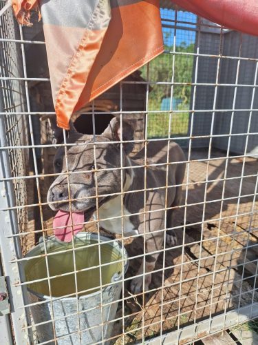 Anschließend machten wir uns auf den Weg nach Örkény zu einem deutschen Tierschützer, der vor einigen Jahren nach Ungarn ausgewandert ist. Gemeinsam mit einigen Deutschen gründete er den Verein NewLife4Animals e.V. und baut seit Jahren sein eigenes, privat geführtes Shelter auf. Auch hier konnten wir Nassfutter im Wert von 250€ dank eurer Futterpatenschaften spenden und uns somit für den Einblick in seinen Shelteralltag bedanken. Holger rettet Hunde aus ganz Ungarn, päppelt sie bei sich auf und findet ggf. ein neues, passendes Zuhause für sie. Ebenso finden Hunde, die keinerlei Chance auf eine Vermittlung haben, ein artegerechtes Zuhause für ihr restliches Leben bei ihm. Dieses Jahr konnte er sogar eine tolle Außenanlage mit einem Schwimmteich für die Hunde bauen. Er konnte uns zu jedem Hund die Herkunftsgeschichte erzählen. Teilweise nahm er auch schon Hunde aus Deutschland auf, die aufgrund von Beißvorfällen o.Ä. eingeschläfert werden sollten. Er hilft bei deren Resozialisation und hat Angestellte, die gezielt mit den Hunden arbeiten. Natürlich finden sich dort, wie in allen anderen Sheltern in Ungarn auch, viele Straßenhund, Tiere aus Beschlagnahmungen und Abgabehunde. In diesem Shelter ist ebenfalls alles von Rassehunden über Mischlingen, jung bis alt, groß bis klein, einfach bis anspruchsvoll vertreten. Dieses Shelter war neu für uns. Aber auch hier zeigt sich wieder: im Tierschutz ist für jeden ein Hund auffindbar! Vielleicht nicht immer sofort, aber es gibt für jeden Haushalt einen passenden, felligen Begleiter. Am Abend holten wir dann noch die restlichen Sachspenden, die ihr uns zugesendet habt, beim Transporteur ab & sammelten direkt auch noch einen Neuzugang ein. Die kleine Mokka wurde alleine auf der Straße gefunden & hatte weder einen Chip, noch einen Besitzer der nach ihr suchte. Wir testeten sie also auf Parvo, Covid & Giardien – alles war glücklicherweise negativ & so konnten wir sie direkt baden und bei uns aufnehmen.