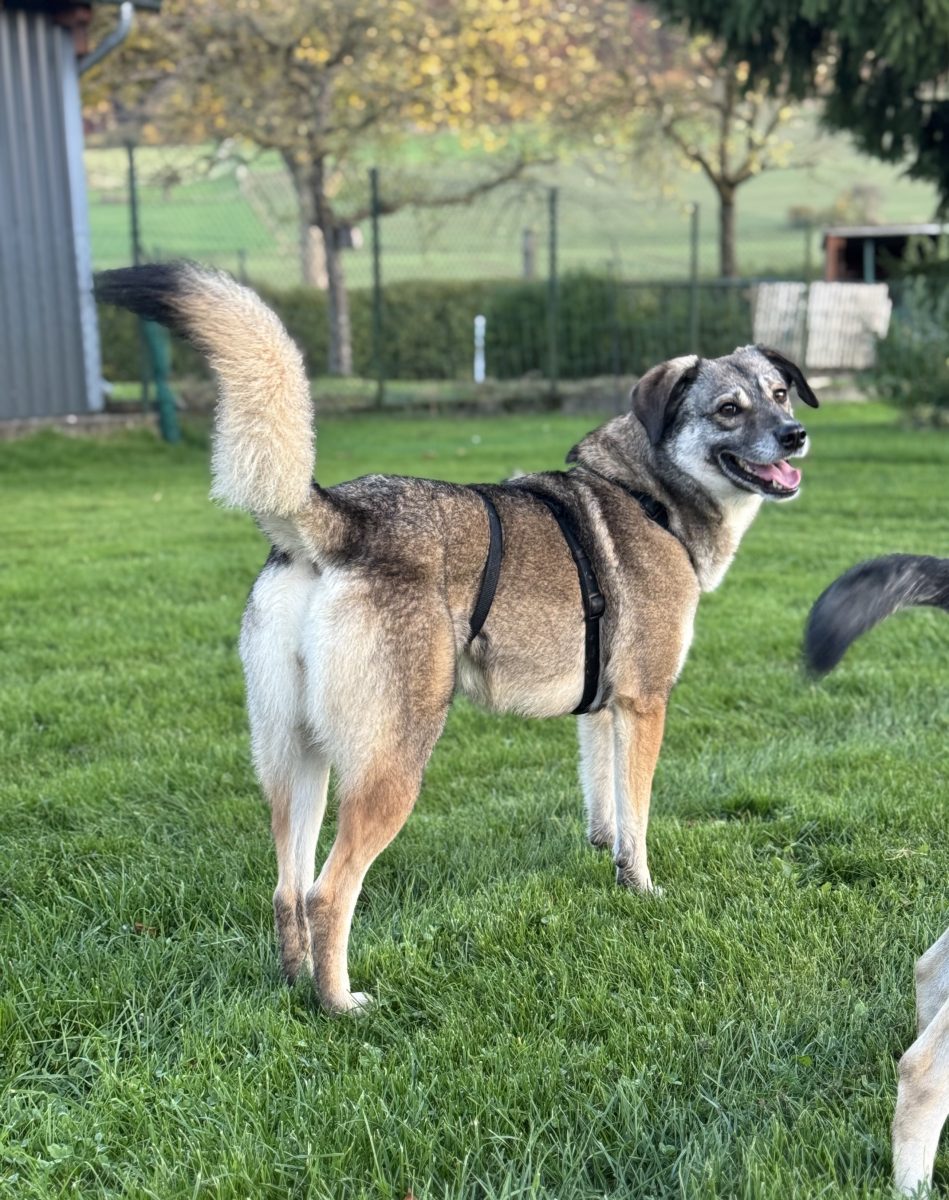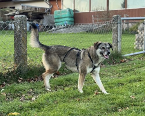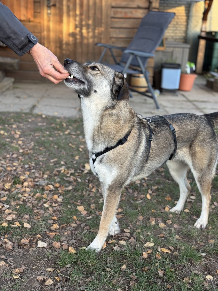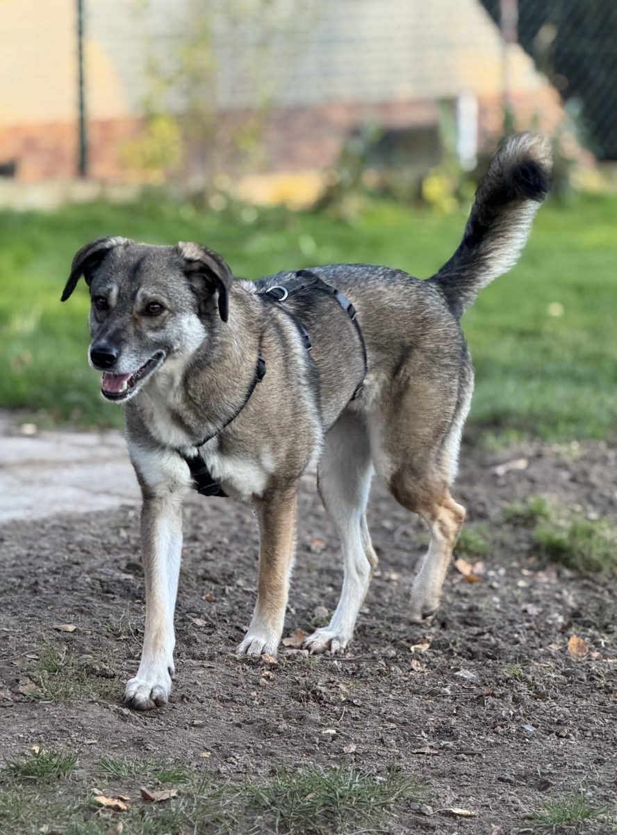 Die wunderschöne zarte Filia wartete in Rumänien so lange auf ihre Chance. Immer wurde sie übersehen. Mit der Situation dort überfordert, zog sich die vorsichtige Hündin immer in ihre Hütte zurück wenn wir sie besuchten. Wenn man sich jedoch eine Weile mit ihr beschäftigte, blühte sie auf und genoß Aufmerksamkeit und Streicheleinheiten. Endlich hatte sie das große Los gezogen und durfte auf eine unserer Pflegestellen reisen, auf der auch schon unser Bailey auf sie wartete. Die Pflegestelle lobt Filia in den höchsten Tönen. Sie ist eine sehr angenehme, unaufdringliche Hündin, die sich super schnell eingelebt und eingefügt hat. Sie taute extrem schnell auf und zeigt sich allen Menschen und Hunden gegenüber freundlich. Filia ist sehr verschmust, aber liebt es auch zu spielen. Ob mit Quietschis, Bällchen oder anderen Hunden – sie liebt es im eingezäunten Garten herumzutollen und zu rennen. Sie lief von Anfang an schon gut an der Leine, hat inzwischen mehr an Selbstbewusstsein gewonnen und geht bei Spaziergängen inzwischen auch gerne mal voran. Am Feldrand Mäuschen suchen und nach ihnen zu buddeln, hat Filia als neues Hobby für sich entdeckt. Bei Hundebegegnungen an der Leine ist sie vorsichtig und geht ohne Probleme an den Hunden vorbei. Filia hört auf ihren Namen und ist stubenrein. Mit ihren Hundekumpels auf der Pflegestelle kann sie stundenweise schon ohne Probleme alleine bleiben. Alles in allem ist Filia die perfekte Hündin für alle, die sich eine treue, liebevolle Begleiterin wünschen. Hundefreunde dürfen gerne schon in ihrem neuen zu Hause wohnen. Wir können uns Filia aufgrund ihres Charakters auch gut bei ambitionierten Hundeanfängern vorstellen. Natürlich muss das Hunde-1×1 weiter geübt werden, aber Filia bringt schon eine wirklich tolle Grundlage mit und zeigt sich als sehr lernfreudig und schlau. Möchtest du Filia kennenlernen und dich von ihrer bezaubernden Art um die Pfote wickeln lassen? Dann füll am besten unser Bewerbungsformular aus und wir melden uns schnellstmöglich bei dir.
