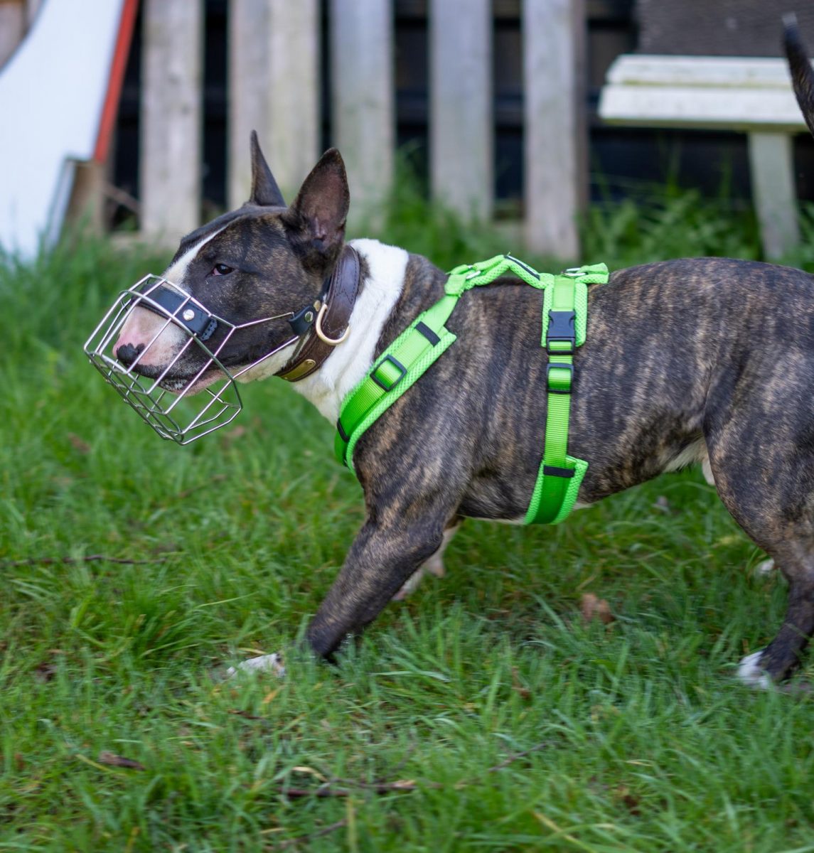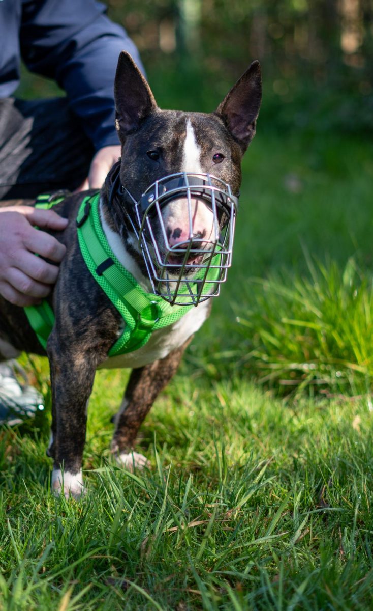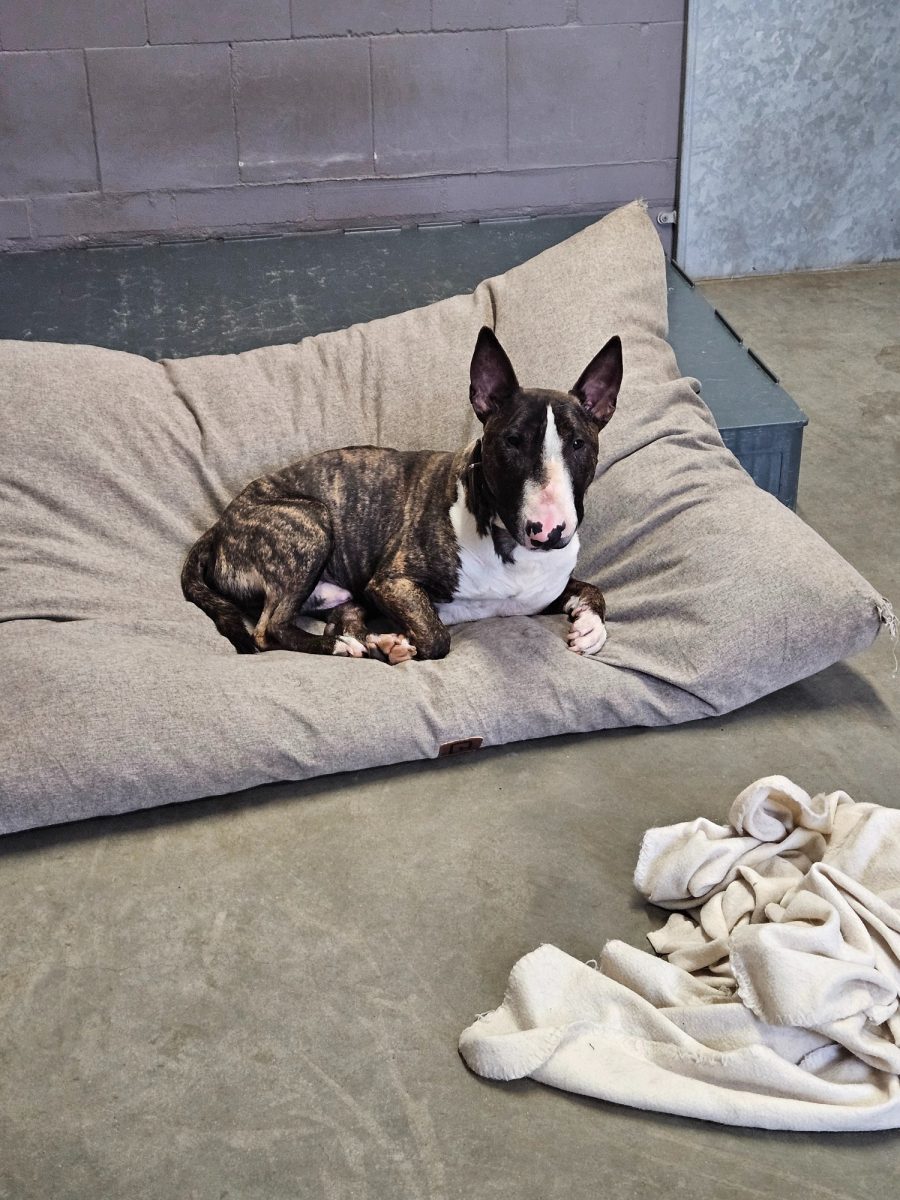 Franz kam im Februar als Fundhund zu uns ins Tierheim. Da er als Fundhund natürlich keine Papiere hat und seine Schulterhöhe über 40 cm liegt, fällt er in einigen Bundesländern – darunter auch NRW – unter die Rasseliste. Er scheint seine Rassebeschreibung gut verinnerlicht zu haben: Franz ist ein echter Charakterkopf mit einem starken Willen und einer guten Portion Humor. Wenn ihm etwas nicht passt, zeigt er das deutlich – sei es durch Bocken an der Leine oder indem er sich einfach stur weigert weiterzugehen. Wir vermuten, dass Franz vor seiner Zeit bei uns nicht viel lernen durfte. Für ihn ist nahezu alles neu und spannend. Dabei zeigt er sich sowohl Menschen als auch anderen Hunden gegenüber recht distanzlos – manchmal sogar ein bisschen zu sehr. Grundsätzlich ist er aber ein freundlicher und aufgeschlossener Kerl, besonders im Umgang mit Menschen. Seit seiner Ankunft hat Franz bereits einiges gelernt. Seine Gesundheit war in der Vergangenheit leider nicht ganz stabil, was uns auch in der Erziehung zeitweise eingeschränkt hat. Er litt an einer beidseitigen Kehlkopflähmung, die ihm das Atmen stark erschwerte. Anfang Juni wurde er operiert – dabei wurde eine Seite seines Kehlkopfes dauerhaft geöffnet und fixiert, um ihm das Atmen zu erleichtern. Die Operation ist gut verlaufen, und wir hoffen, dass er nun wieder deutlich mehr Lebensqualität und Bewegungsfreiheit genießen kann. Franz fühlt sich als Einzelhund vermutlich am wohlsten. Er hat nie richtig gelernt, angemessen mit Artgenossen umzugehen. In Situationen mit viel Dynamik geht er schnell nach vorne – dabei ist nicht auszuschließen, dass er seine Zähne einsetzt würde, sowohl gegenüber anderen Hunden als auch gegenüber Menschen, die ihn in solchen Momenten aus der Situation nehmen möchten. Sein Verhalten ist – betrachtet man den ursprünglichen Verwendungszweck des Bullterriers – durchaus rassetypisch. Daher suchen wir für Franz ein Zuhause ohne andere Tiere, kleine Kinder, Katzen oder Kleintiere. Menschen mit Hundeerfahrung, idealerweise im Umgang mit charakterstarken Rassen, wären ideal für ihn. Franz kennt das Tragen eines Maulkorbs und ist damit gut vertraut. Update 08/25: Wir hoffen sehr, dass Franz bald ein liebevolles Zuhause findet, denn der Tierheimalltag setzt ihm zunehmend zu. Seine Spazierfreude hat spürbar nachgelassen, und auch seine fröhliche Art zeigt sich nur noch selten. Es wird Zeit, dass er ankommen darf.