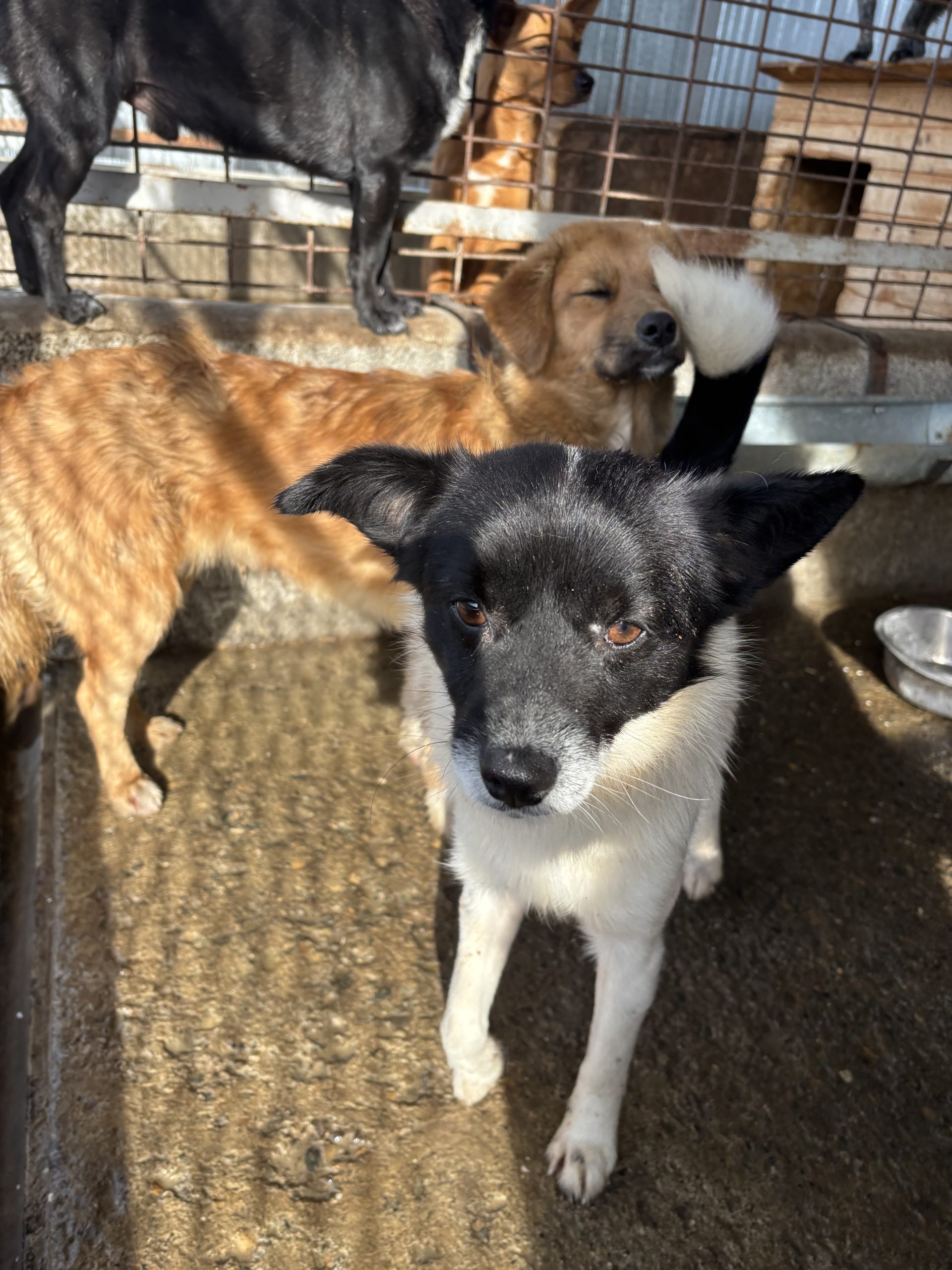 Unseren Nox lernten wir während unserer vergangenen Rumänienreise im Oktober 2025 im öffentlichen Shelter kennen. Hier zeigte sich der junge Rüde vom ersten Moment an als freundlicher, aufgeschlossener kleiner Kerl. Er begrüßte uns sofort als wir seine Box betraten und genoss sehr due Aufmerksamkeit der Menschen. Nox ließ sich von uns überall problemlos anfassen , streicheln und nahm Leckerlies aus der Hand gut an. Da er sich stets harmonisch mit allen anderen Rüden in seiner Box zeigte, können wir uns Nox auch gut als Zweithund vorstellen. Da wir zu seiner Vergangenheit leider nichts sagen können und nicht wissen ob er eventuell schon mal ein Zuhause hatte, sollte sich seine neue Familie erstmal darauf einstellen, dass Nox mit allen Dingen hier in Deutschland bei null anfängt, weshalb wir zu dem Besuch einer Hundeschule raten. Nox kann ab sofort ausreisen.