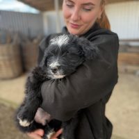 Söckchens Mama Frida wurde von unserer Tierschützerin in einem hohlem Baumstamm entdeckt. Dort hatte sie ihre Welpen geboren und versuchte, sie so gut wie möglich zu beschützen. Unsere Tierschützerin brachte die kleine Familie sofort in Sicherheit und nahm sie bei sich auf, wo Frida ihre Babys liebevoll großzog. Inzwischen sind die Kleinen alt genug, um eigenständig zu werden, und Frida durfte bereits in ihr eigenes Für-immer-Zuhause umziehen. Für Söckchen und seine Geschwister beginnt nun ein spannender neuer Lebensabschnitt – ab Dezember 2025 dürfen sie sich auf die Suche nach ihren eigenen Familien machen. Söckchen ist ein typischer Welpe: verspielt, aufgeweckt, freundlich und voller Neugier. Er geht offen auf Menschen zu und hat jede Menge Flausen im Kopf. Durch den täglichen Kontakt zu Menschen fällt ihm der Start in ein neues Zuhause später leichter. Trotzdem wird auch für Söckchen vieles zunächst ungewohnt sein. Das Leben in einem Haushalt kennt er noch nicht. Wie alle Welpen wird er anfangs noch nicht stubenrein sein, Dinge anknabbern, seine Grenzen testen und braucht Zeit, um das Hunde-1×1 sowie das Laufen an der Leine zu lernen. Welche Rassen in Söckchens Genen stecken, können wir nicht sicher sagen. Sein äußeres Erscheinungsbild lässt vermuten, dass mehrere Rassetypen beteiligt sind. Dadurch ist es möglich, dass sich später ein gewisser Jagdtrieb oder auch territoriales Verhalten entwickeln könnte. Falls sich solche Tendenzen zeigen, ist es wichtig, von Beginn an ruhig, konsequent und mit fachlicher Unterstützung daran zu arbeiten, damit sich kein unerwünschtes Verhalten festigt. Wer einen Welpen adoptiert, übernimmt eine große Verantwortung. Ein junger Hund bedeutet nicht nur viel Freude, sondern auch Arbeit: Er braucht eine klare Struktur, Geduld, Zeit und liebevolle Führung. Neue Eindrücke, Geräusche, Menschen und Situationen müssen Schritt für Schritt positiv aufgebaut werden, damit Söckchen gut sozialisiert aufwächst und sich sicher in der Welt zurechtfindet. Auch die Pubertät wird Söckchen nicht überspringen. In dieser Entwicklungsphase stellen viele Hunde ihre Grenzen erneut auf die Probe, wirken phasenweise „vergesslich“ oder reagieren unsicher. Gerade dann ist es entscheidend, ruhig, konsequent und liebevoll zu bleiben, sodass Söckchen sich zu einem gelassenen und stabilen Begleiter entwickeln kann. Eine gute Welpen- oder Junghundegruppe wäre für Söckchen ideal, denn sie bietet ihm wichtige Sozialkontakte und fördert seine Entwicklung positiv – körperlich wie mental. Wer Söckchen ein Zuhause schenkt, entscheidet sich für ein junges Lebewesen, das Fürsorge, Kontinuität und liebevolle Konsequenz braucht. Mit der richtigen Begleitung wächst Söckchen zu einem wunderbaren Familienhund heran. Söckchen wird nicht zu intakten Hündinnen vermittelt.