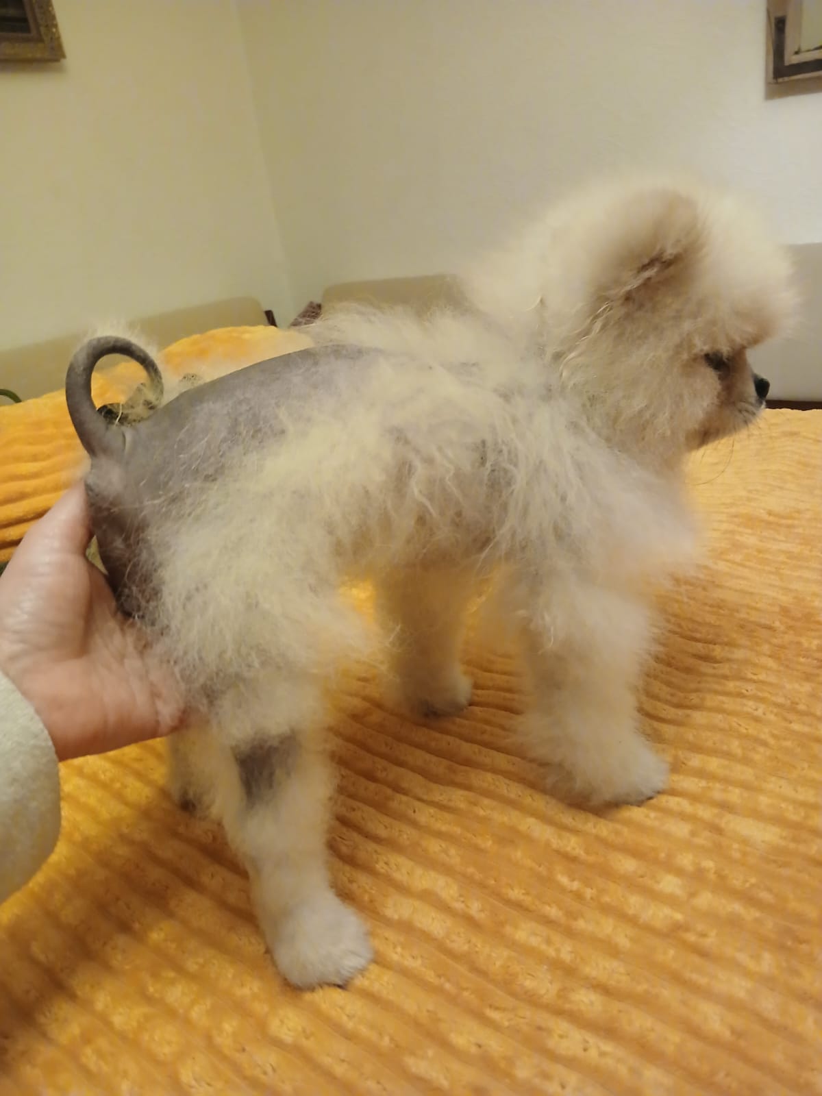 Chico hatte in den ersten 5 Jahren seines Lebens kein stabiles Umfeld und wechselte mehrfach die Besitzer. Der kleine Zwergspitz (Qualzucht) wurde bewusst für sein Äußeres gezüchtet und gelangte letztendlich nach mehreren Besitzerwechseln über den Verein Hunde und Co. in Not e.V. zu uns. Auf unserer Pflegestelle angekommen mussten erst einmal umfassende Untersuchungen angestellt werden, denn Chico leidet unter mehreren Qualzuchtmerkmalen: Alopezie, Patella Luxation, neurologischen Ausfällen (dazu später mehr). Alle Untersuchungen hat er geduldig über sich ergehen lassen & ist nun endlich auf der Suche nach seinem für-immer-Zuhause, in dem er in seinem Tempo ankommen darf. Er ist ein eher zurückhaltender Zeitgenosse, der anfangs etwas Zeit und Geduld benötigt, um seine anfängliche Unsicherheit zu überwinden. Doch wer sein Vertrauen gewinnt, wird mit einem offenen und freundlichen Freund fürs Leben belohnt. Im Alltag zeigt er sich bereits von seiner besten Seite: Er ist stubenrein, läuft vorbildlich an der Leine und beherrscht ein paar Grundkommandos. Auch Autofahrten sind für ihn gar kein Problem. Gegenüber Umweltreizen, wie Autos, Joggern oder lauten Sirenen, zeigt er sich angenehm gelassen und souverän. Er ist ein ruhiger Charakter, der Streicheleinheiten und Aufmerksamkeit sehr genießt – allerdings sollten seine Grenzen respektiert werden: im Schlaf möchte er beispielsweise nicht gestört werden. Respektiert man diese Grenzen nicht, schnappt Chico. Warum der Pomeranian abschnappt könnte mehrere Ursachen haben: zum einen ist die Wahrscheinlichkeit hoch, dass er bisher immer Schmerzen aufgrund seiner Krankheit CM/SM hatte. Ein anderer Faktor könnte aber auch die bisher fehlende Erziehung sein. Mit Hündinnen & kastrierten Rüden versteht er sich gut, bei anderen unkastrierten Rüden entscheidet er nach Sympathie. Katzen, ältere Kinder (ab Teenageralter) oder Männer stellen nach bisheriger Erfahrung kein Problem dar. Ein Jagdtrieb konnte auch nicht beobachtet werden; in einem eingezäunten Garten bleibt er zuverlässig bei seinen Menschen. Er ist sehr motivierbar durch Futter und Zuwendung, was das weitere Training erleichtern wird. Wichtig zu wissen ist aber, dass er unter einer Hühnchenallergie leidet. Mit Rind oder Pferd im Napf ist er jedoch bestens versorgt und gesundheitlich stabil. Chico hat BSD/Alopezie, weshalb er an vielen Stellen seines Körpers kein Fell hat und darauf angewiesen ist Kleidung zu tragen. Durch eine begonnene Darmsanierung fangen inzwischen an die Haare zu wachsen. Seine neuen Besitzer sollte sich auf Dauer aber drauf einstellen, dass dieser optische Mangel je nach Immunsystem variieren kann. Zusätzlich wurde bei Chico durch ein MRT bestätigt, dass er CM/SM hat und mit Medikamenten 3 mal täglich behandelt werden muss, um die neurologischen Schmerzen einzudämmen. Dies sollte im neuen Zuhause zwingend weiter erfolgen. Zudem helfen regelmäßige Physioeinheiten sein Gangbild zu verbessern & die verspannten Muskeln zu lockern. Wir suchen für Chico ein Zuhause, wo er idealerweise als Einzelprinz oder mit Hündinnen zusammenleben kann. Zusätzlich wäre wichtig, dass sich seine neuen Besitzer vorab der medizinischen & finanziellen Verantwortung bewusst sind, die mit seiner Adoption einhergehen. Ein Zuhause, wo er nicht viel alleine bleiben muss, wäre ideal für ihn, denn das Alleinebleiben bereitet ihm derzeit noch Probleme und sollte im neuen Zuhause kleinschrittig ausgebaut werden. Wir können uns Chico nach Eingewöhnung auch als Bürohund vorstellen. Menschen, die ihm die nötige Sicherheit vermitteln und ihm mit Liebe und Geduld begegnen, lassen die kleine Fellnase schnell aus seinem Schneckenhaus kommen. Wer sich vorstellen kann, dem sensiblen Rüden ein liebevolles & verantwortungsvolles Zuhause zu schenken, kann sich gern bei uns melden. Chico kann jederzeit auf seiner Pflegestelle kennengelernt werden.